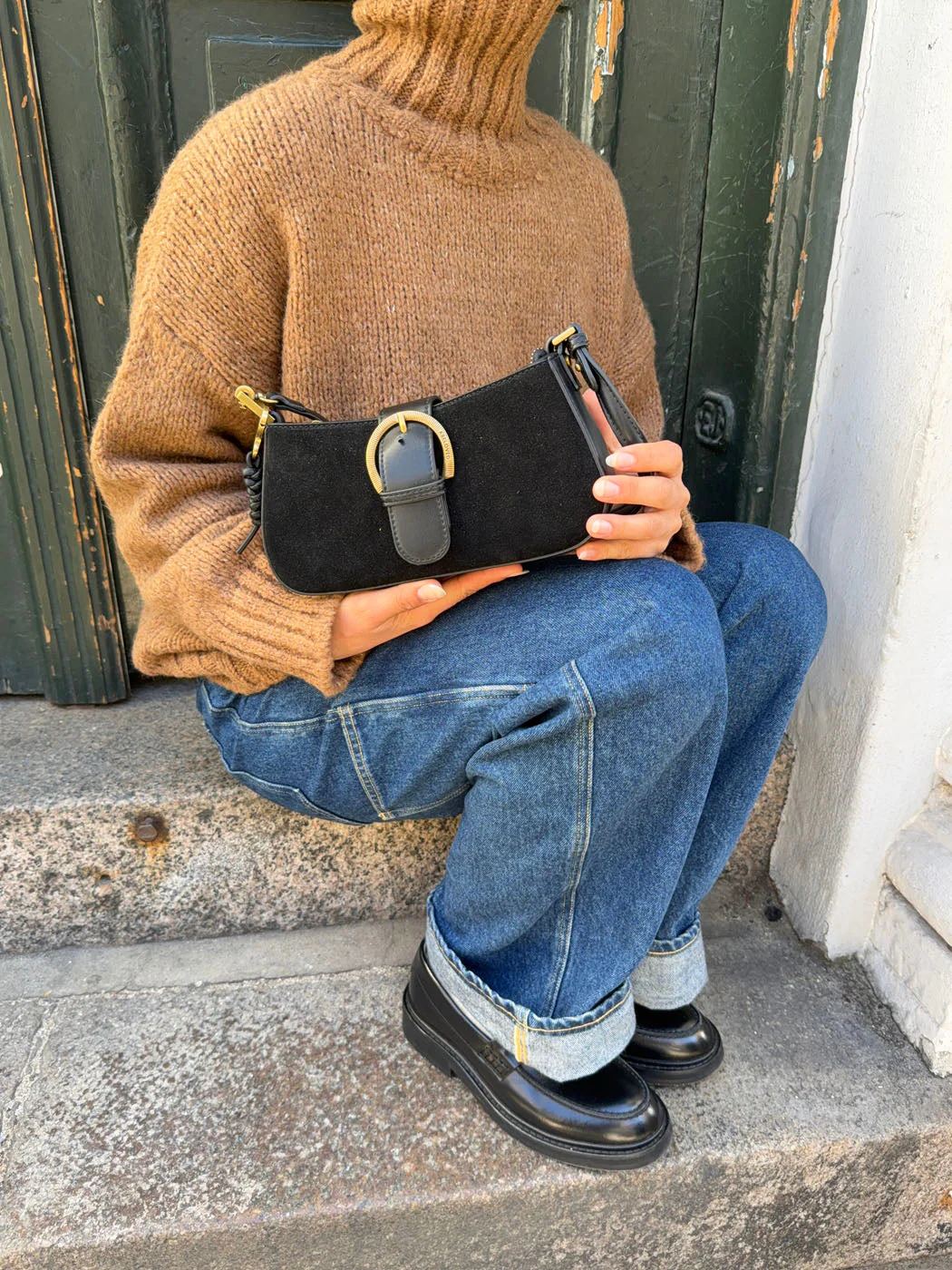 Discover our small suede bag that combines style and functionality. The beautiful buckle detail on the front adds a unique touch, while the zip closure keeps your essentials secure. With a practical shoulder strap, it's easy to carry in comfort. Its timeless design makes it perfect for both everyday use and special occasions.